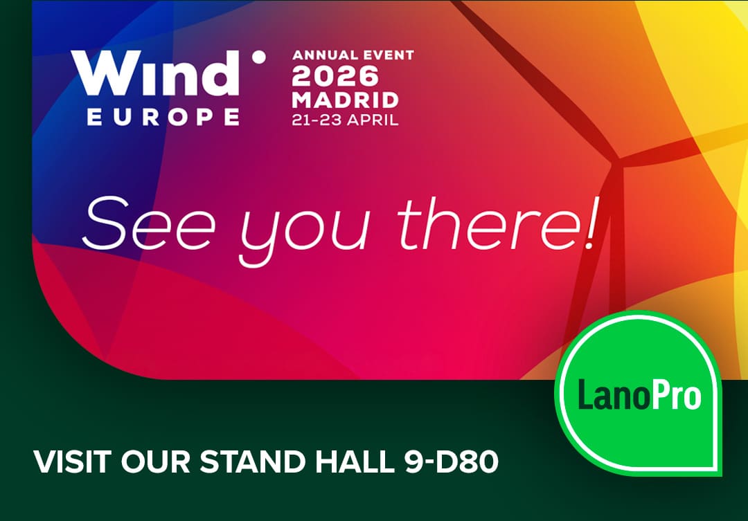 We are excited to announce that LanoPro will be attending WindEurope Annual Event 2026 in Madrid, Spain, from 21–23 April 2026. You’ll find us at the Norwegian Pavilion, Hall 9, Stand D-80 at IFEMA Madrid.